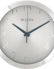 Bulova Winston Wall Clock C4844 | 10″ Diameter | Metal Design with Diamond Cut Edges | Silent Sweep Quartz Movement | Easy-to-Read Arabic Numerals
