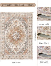 Washable Area Rug 8×10, Large Soft Rugs for Living Room Stain Resistant Non-Slip Backing Rugs for Bedroom, Vintage Clearance Large Area Rug (Turmeric/Grey,8’x10′)
